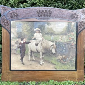 ‘The First Love Letter’ ~ Chromolithograph Print 1908 in Heavy Wooden Carved Frame