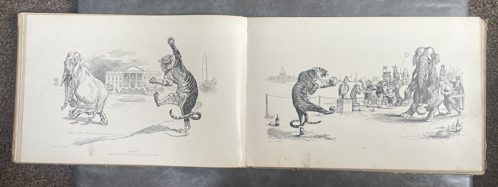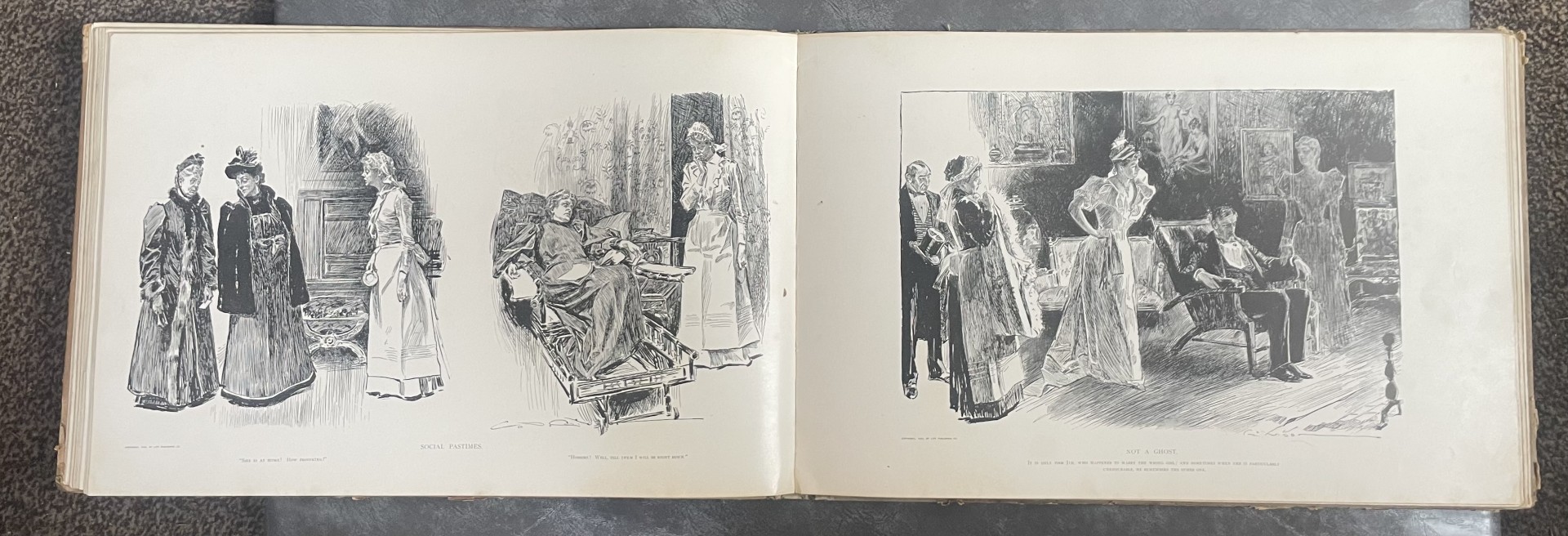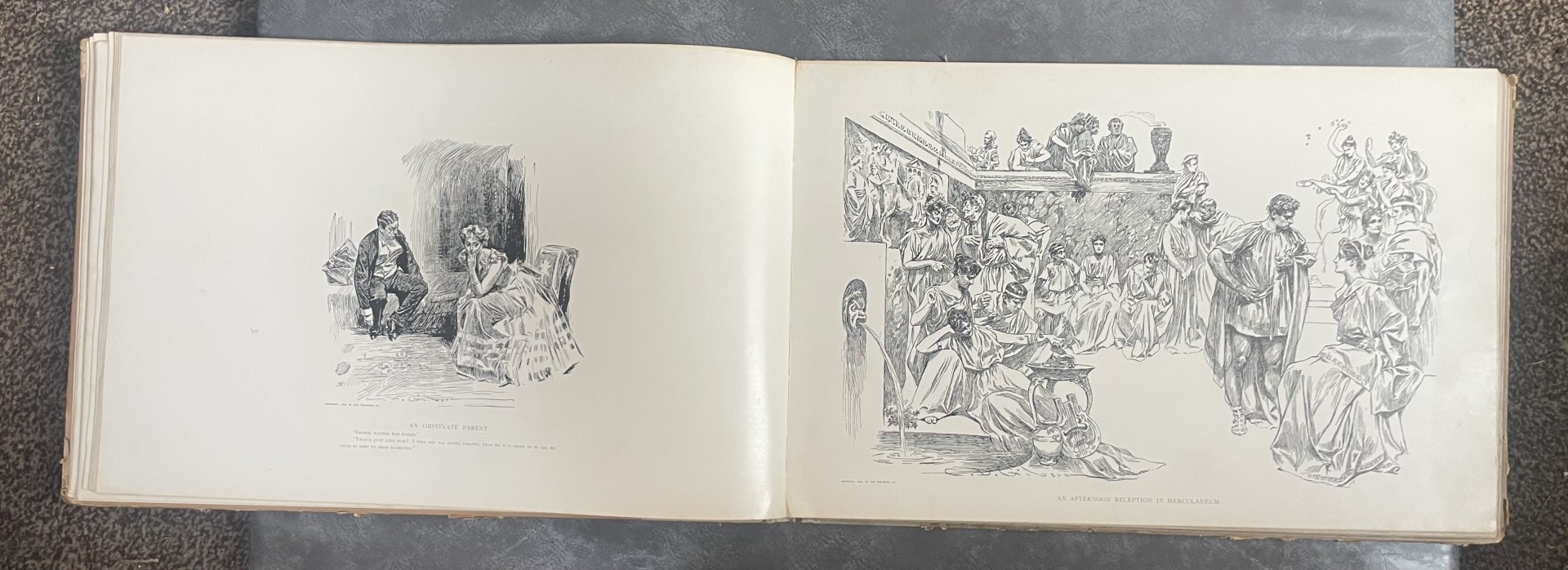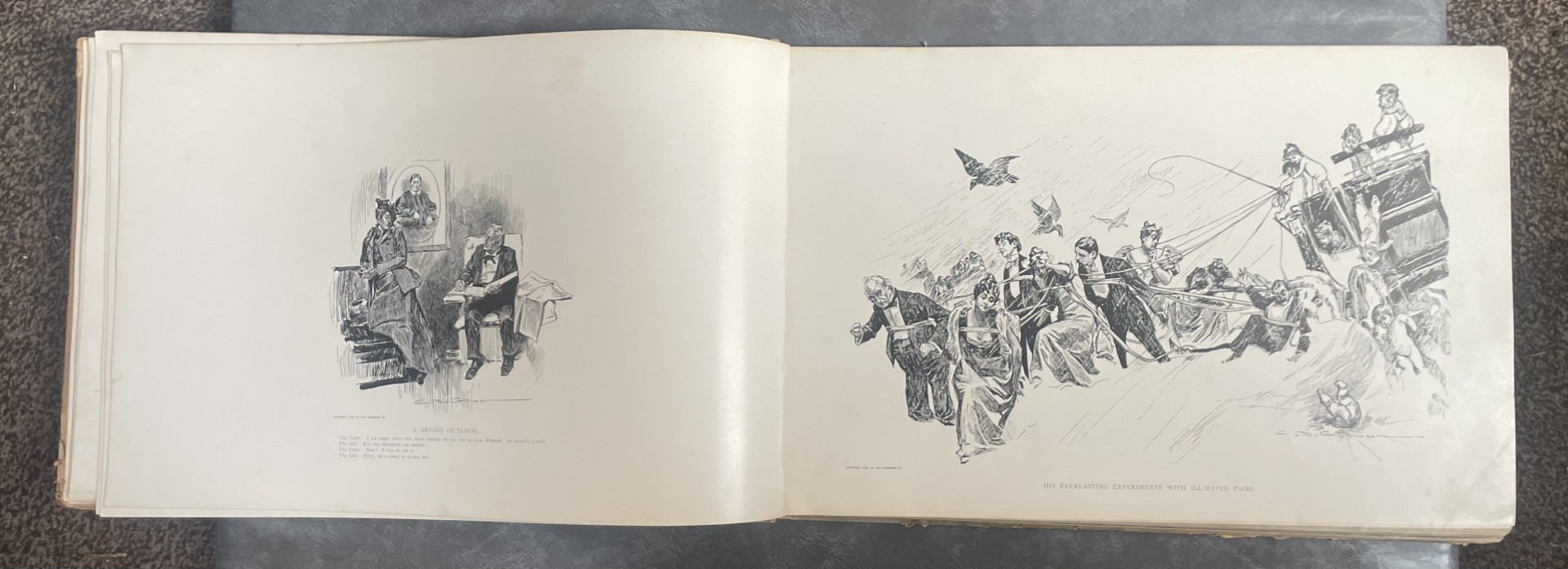 Wonderful rare and large ‘Drawings’ book of lithograph prints in great condition by Charles Dana Gibson, along with two ‘Gibson Girl’ framed and glazed prints, each measuring approx. 16 x 13 inches.