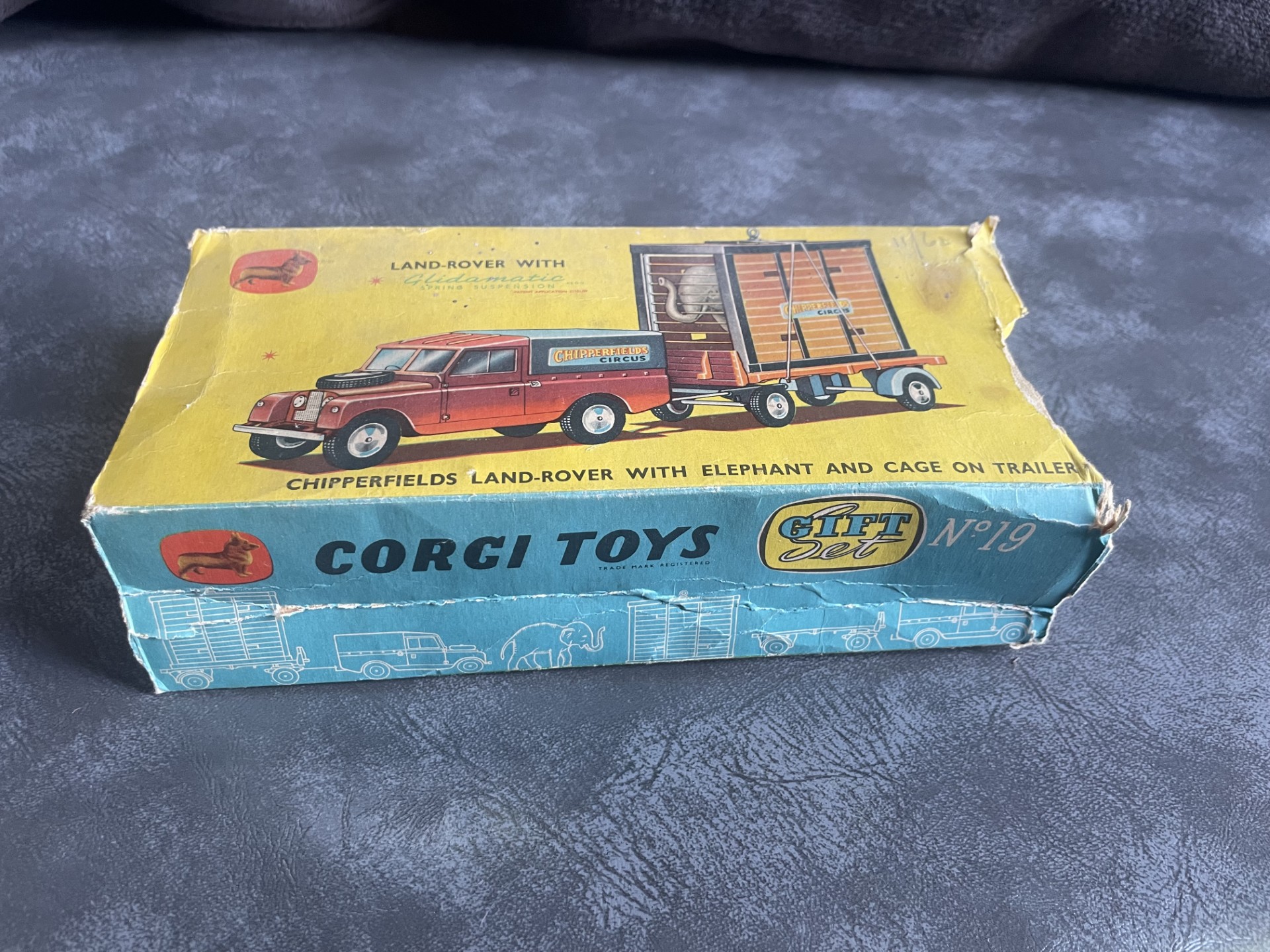 Gift Set No 19 Land Rover with Elephant Cage on Trailer – VG/EX w/ elephant in poor box