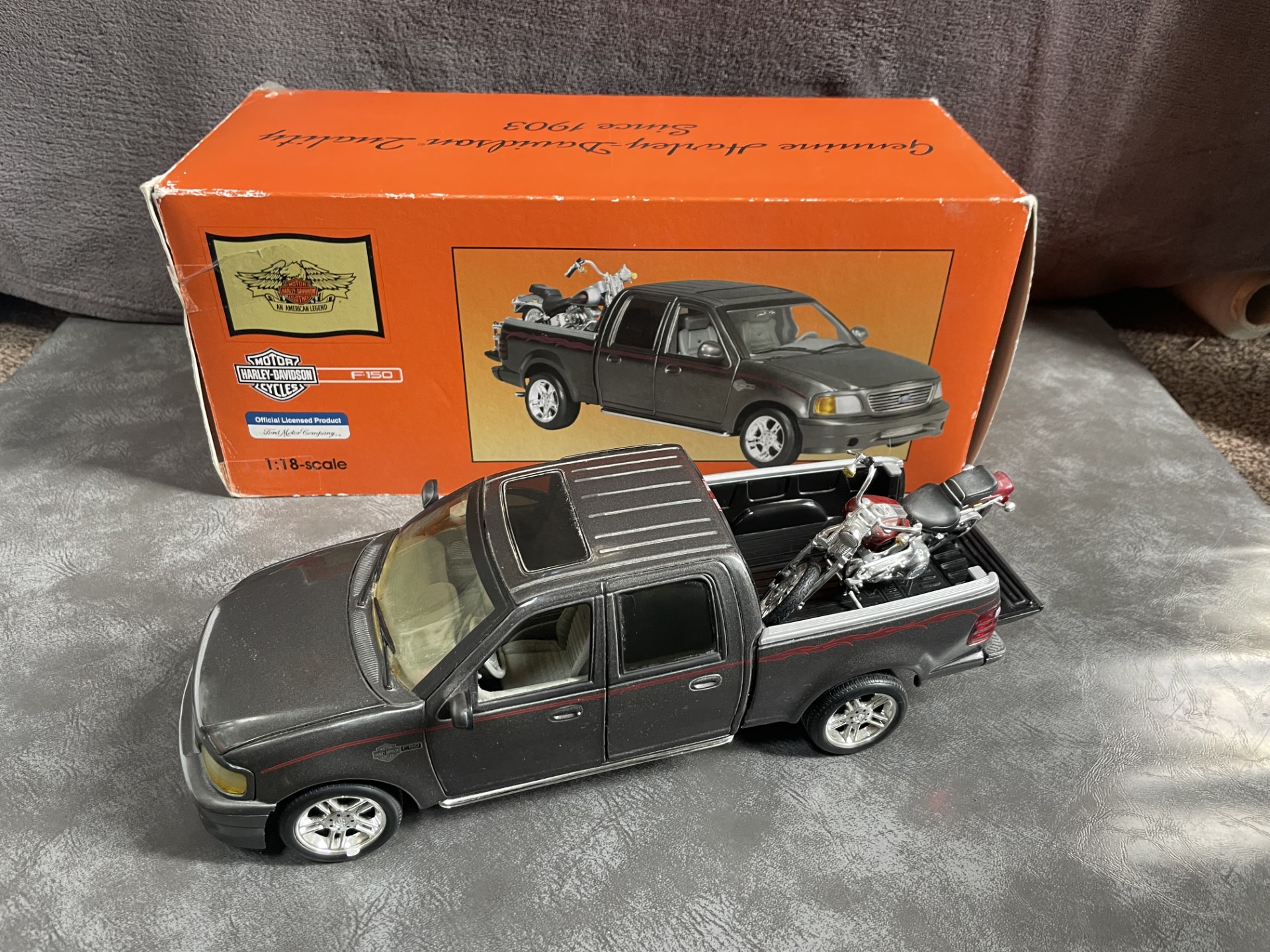 Be the first to review “Ertl Harley Davidson Ford F150 Diecast 1:18 Model w/ Fatboy Motorcycle”