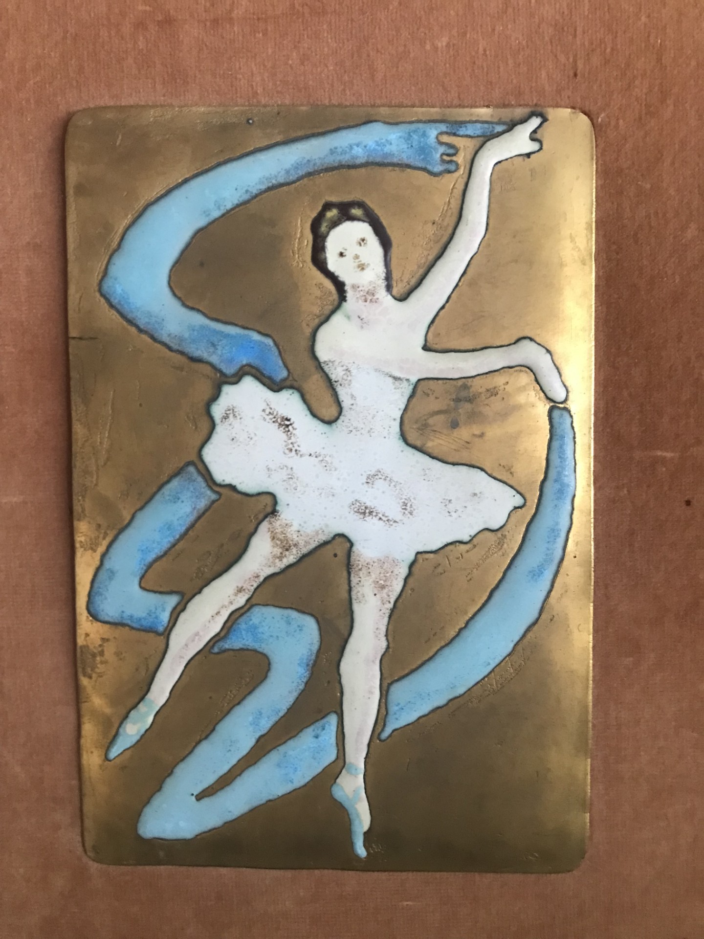Enamelled plaque on copper using the Champleve technique.