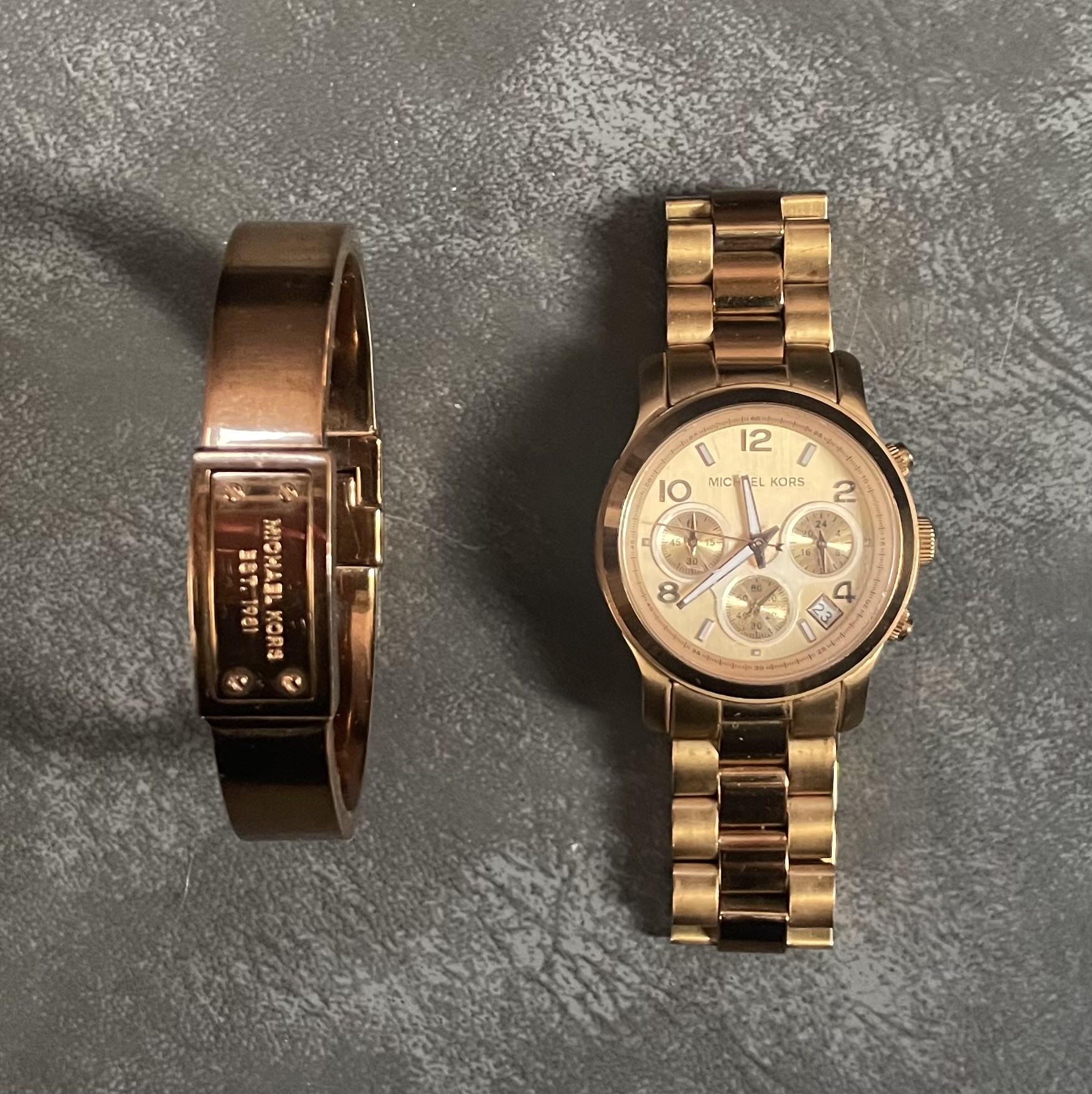 Michael Kors Copper Rose Gold Tone Wristwatch and Bracelet Set