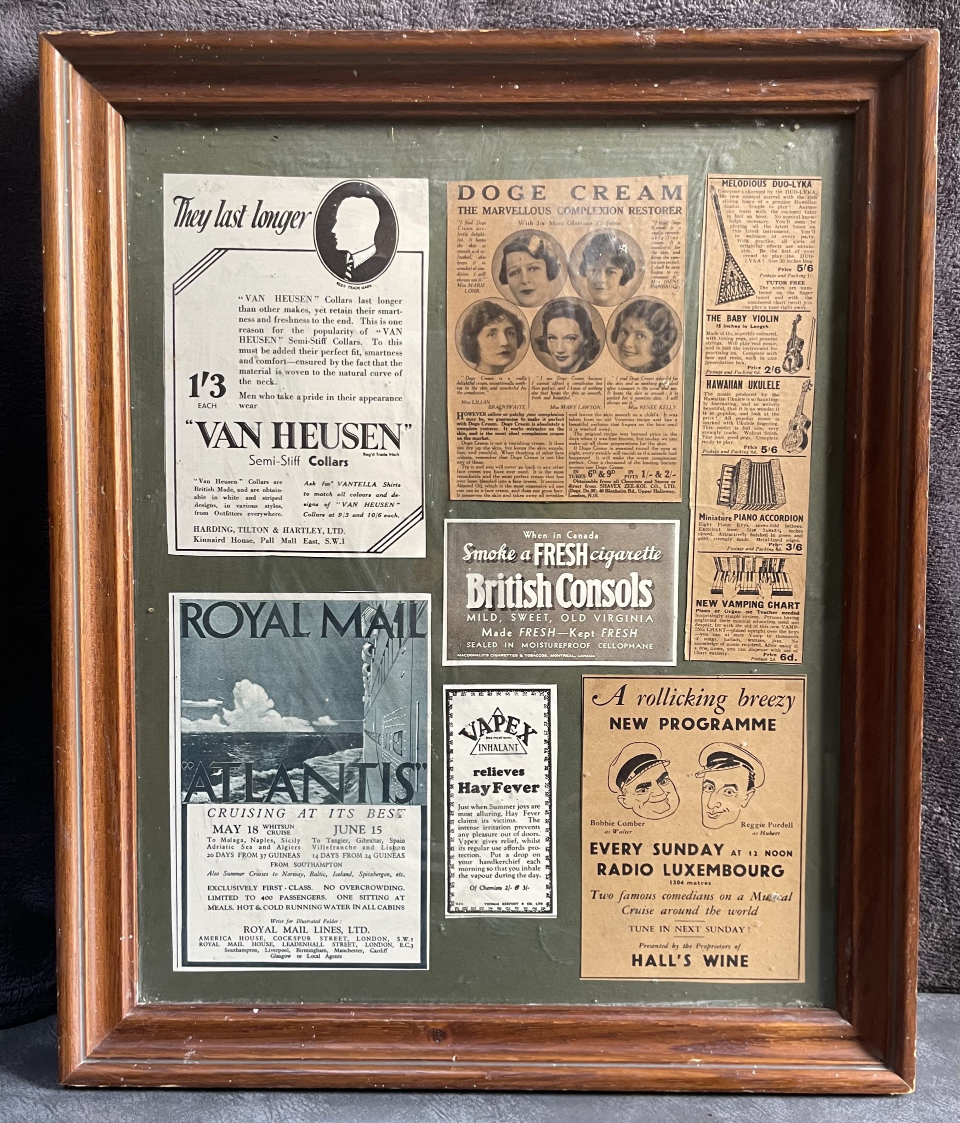Be the first to review “Newspaper Advertisements Framed and Glazed”