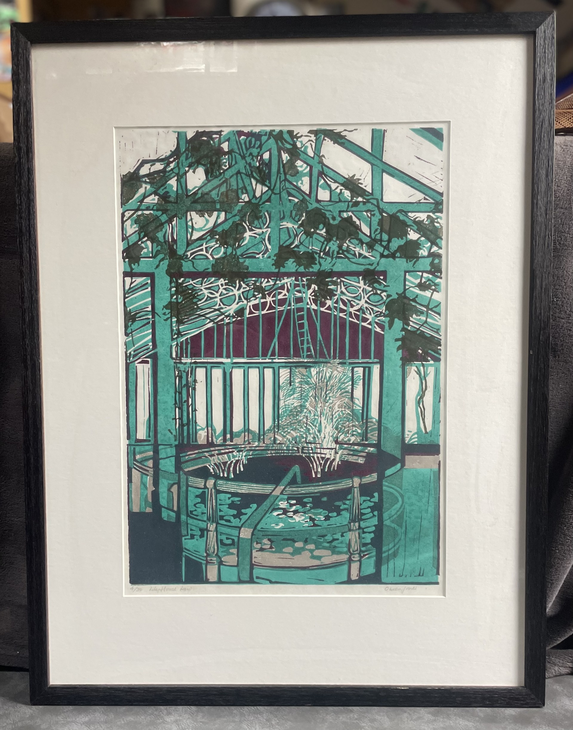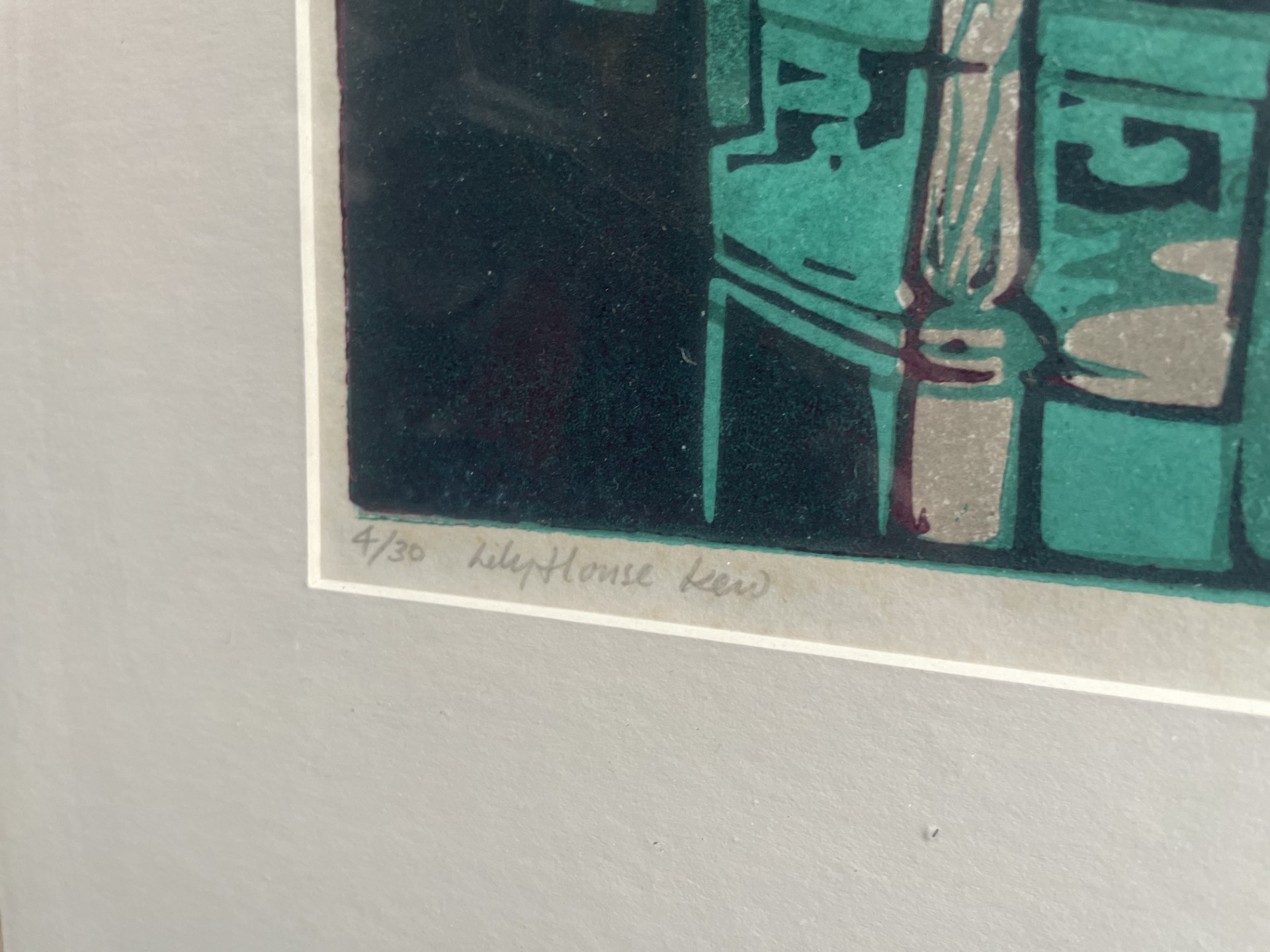 Large Framed Lily House Kew limited 4/30 block print by Olwen Jones