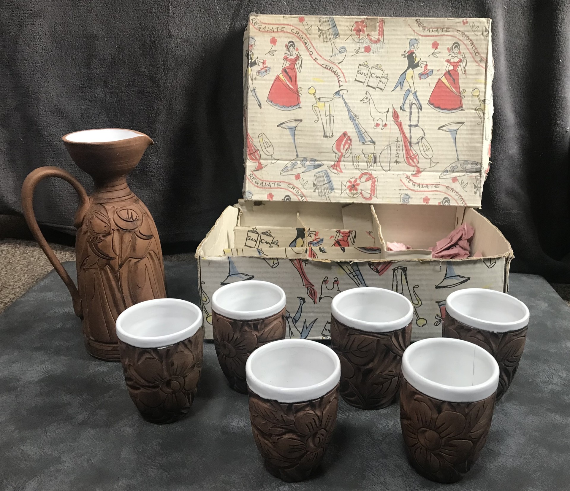 Regalate Cristallo Ceramic Jug & Goblet Set from Italy circa 1960’s/70’s