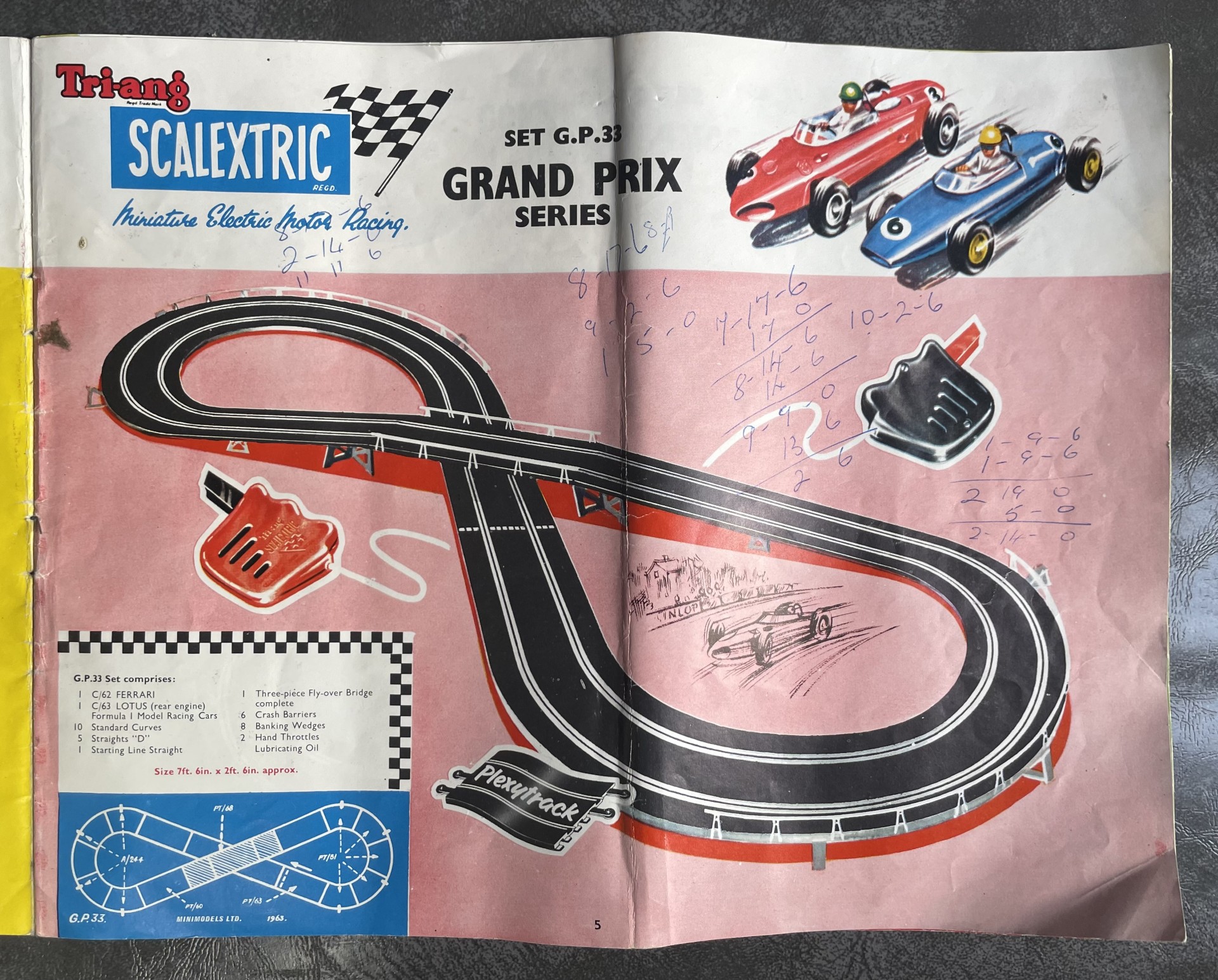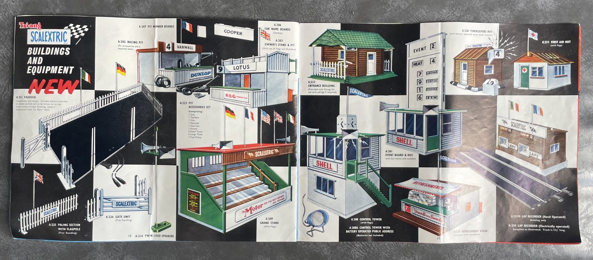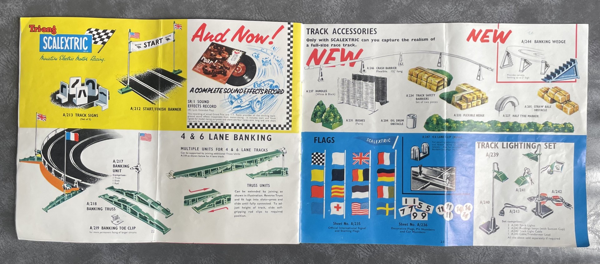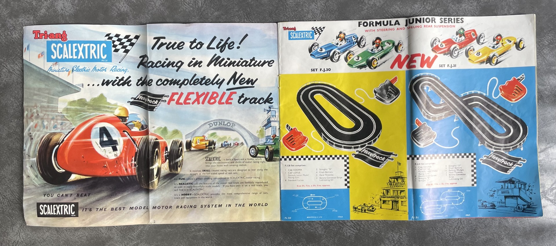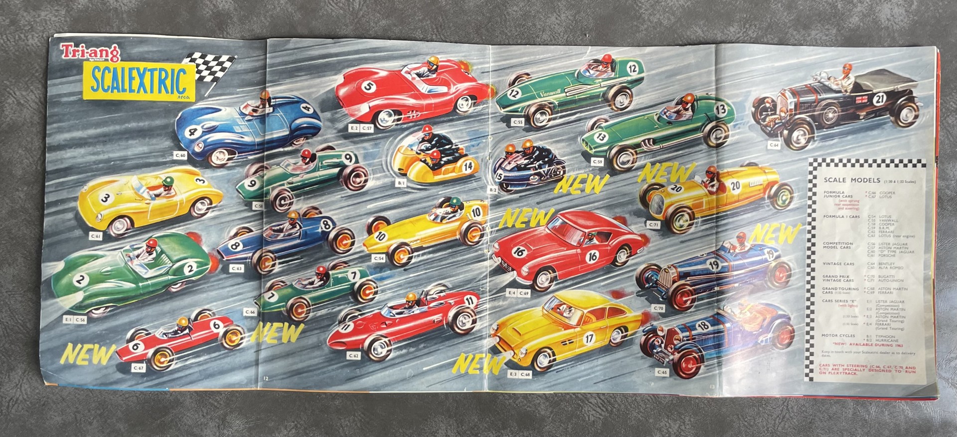 Great pair of 1960’s Scalextric cars, plus a catalogue from the period, which is a veritable feast for the eyes of young-hearted enthusiasts.