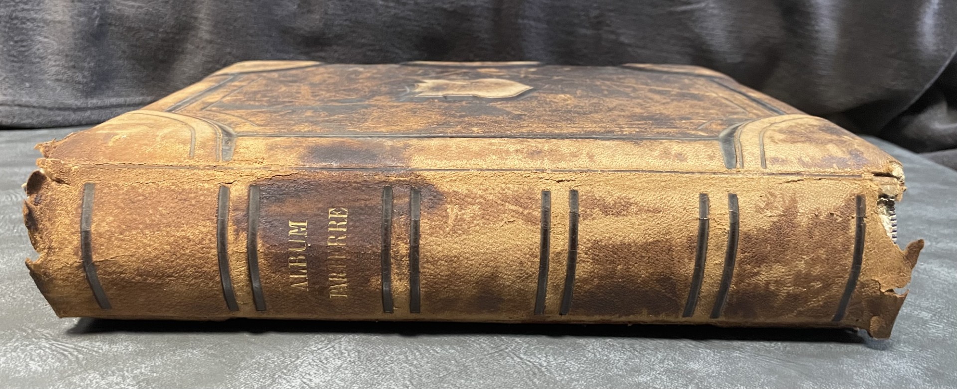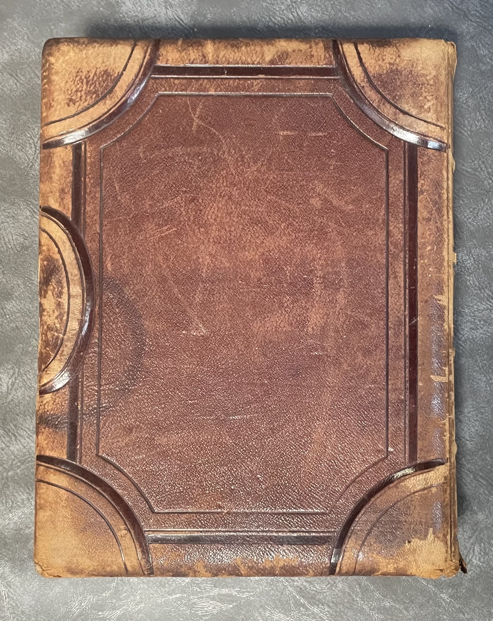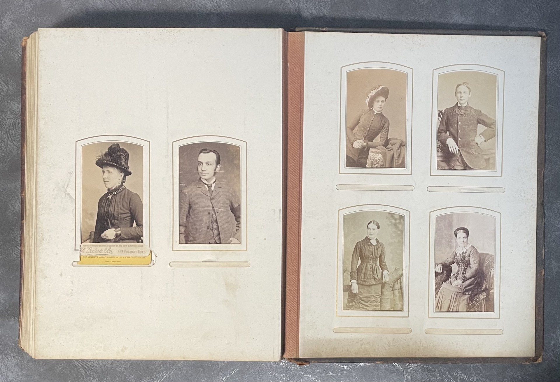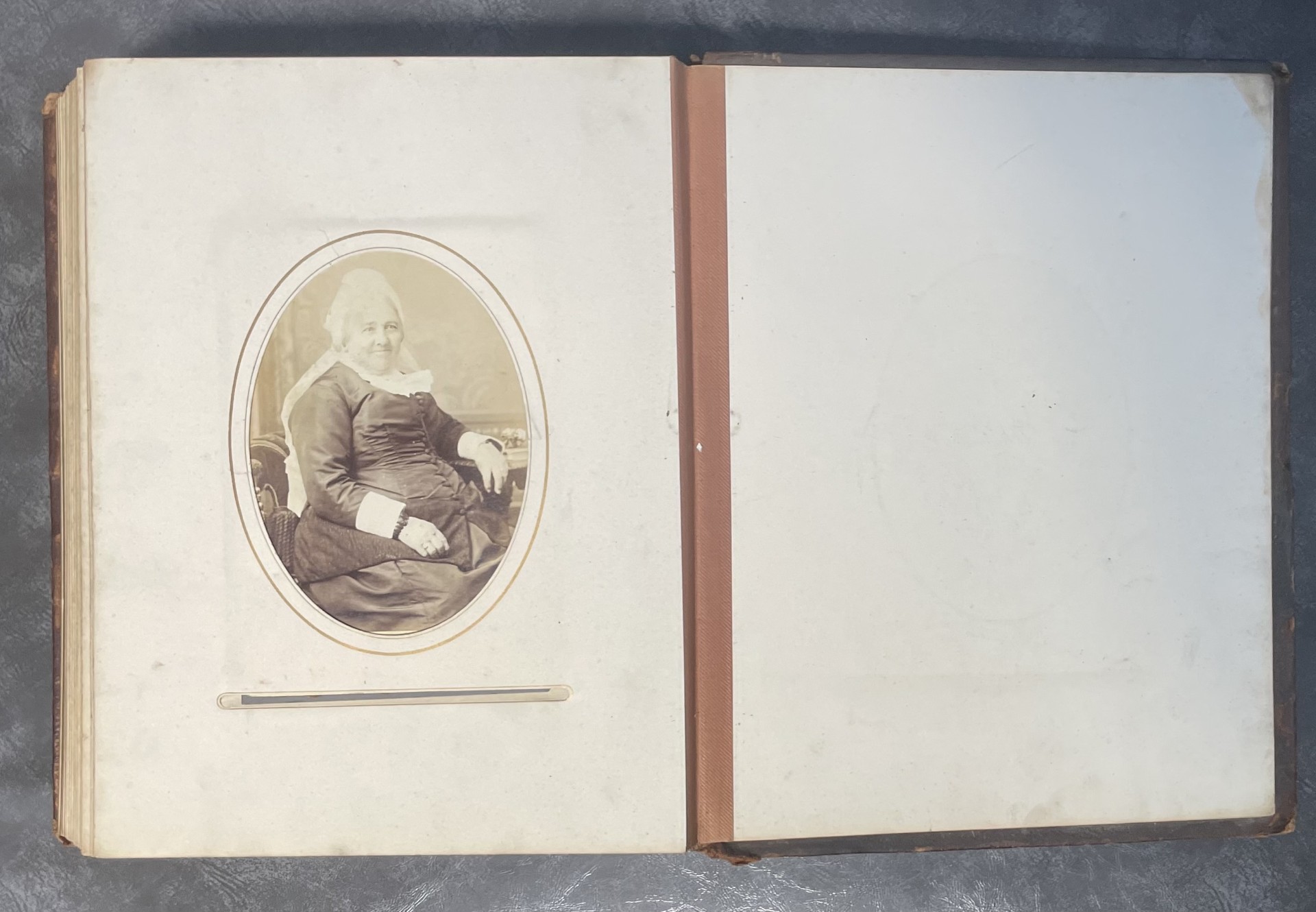 Large heavy 19th Century leather-bound album overflowing with fascinating photographs, plus a few interesting memoriam cards.