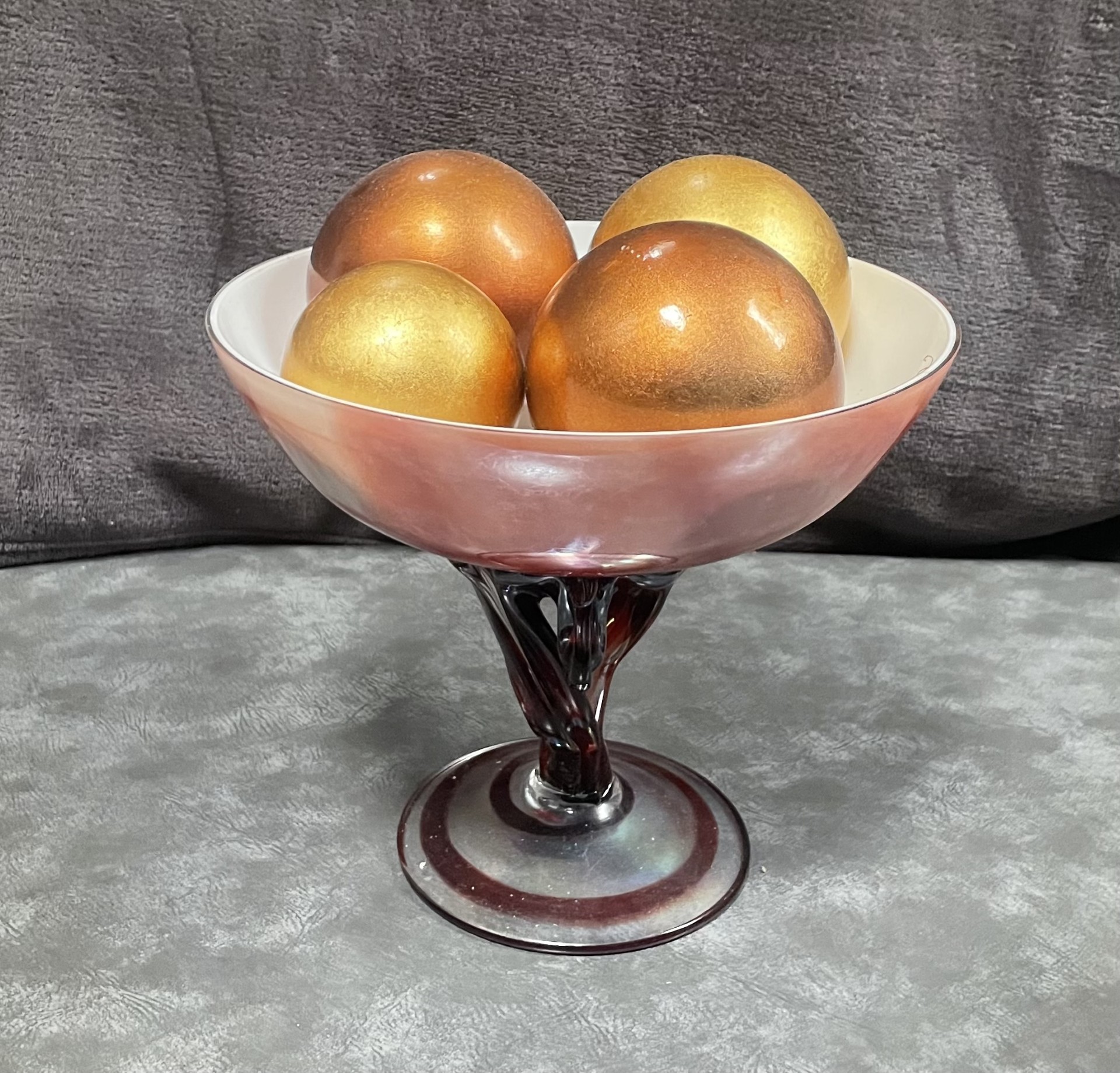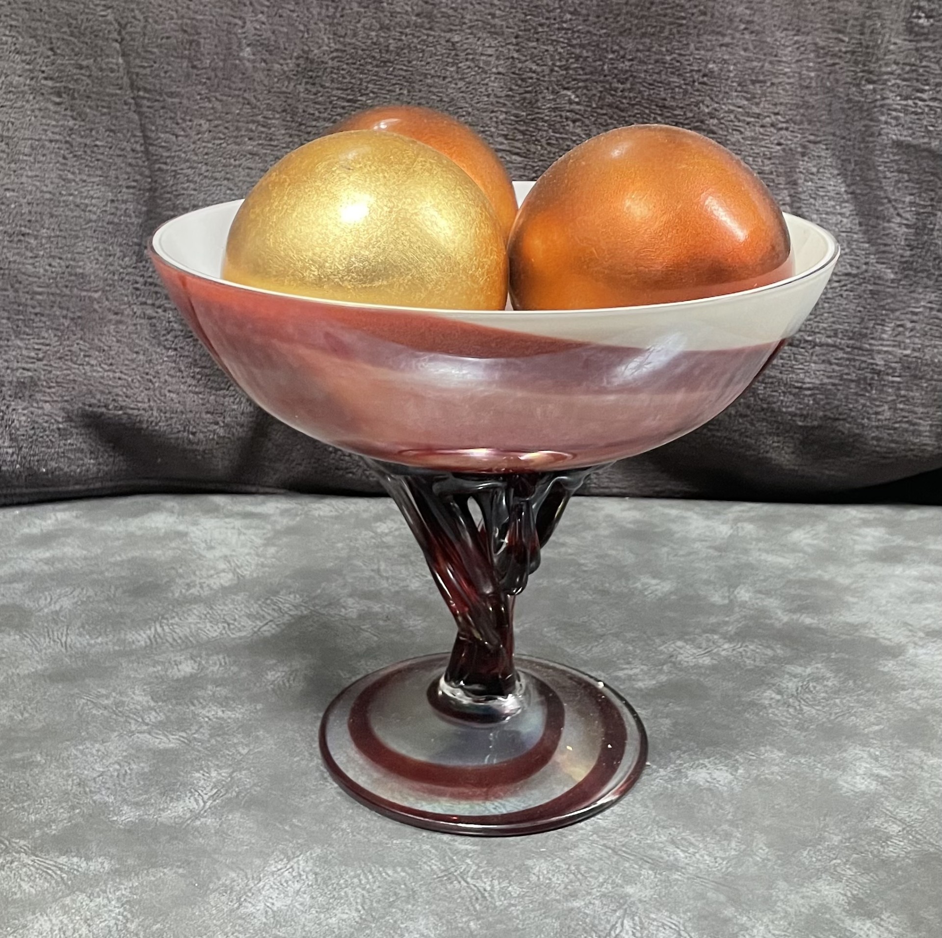 Vintage Handblown Glass Twisted Stem Compote Bowl