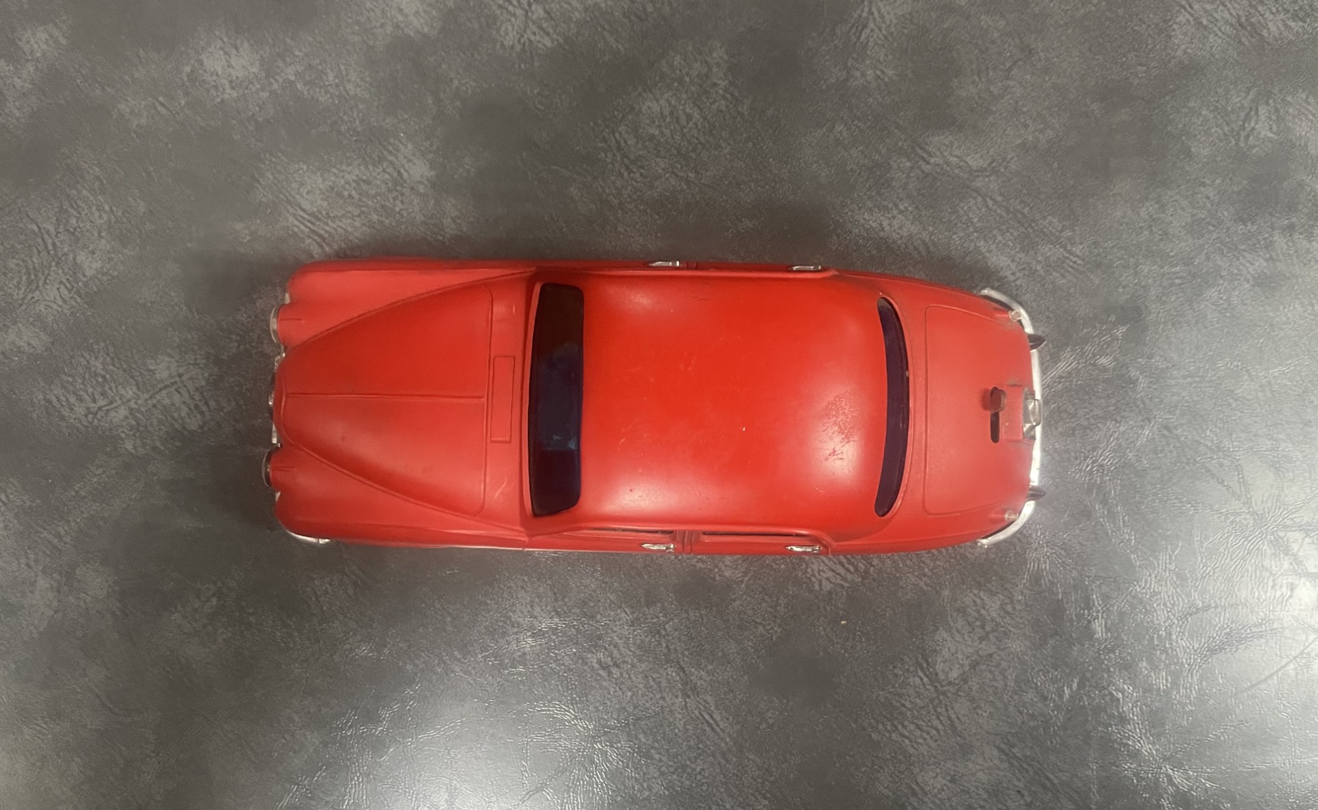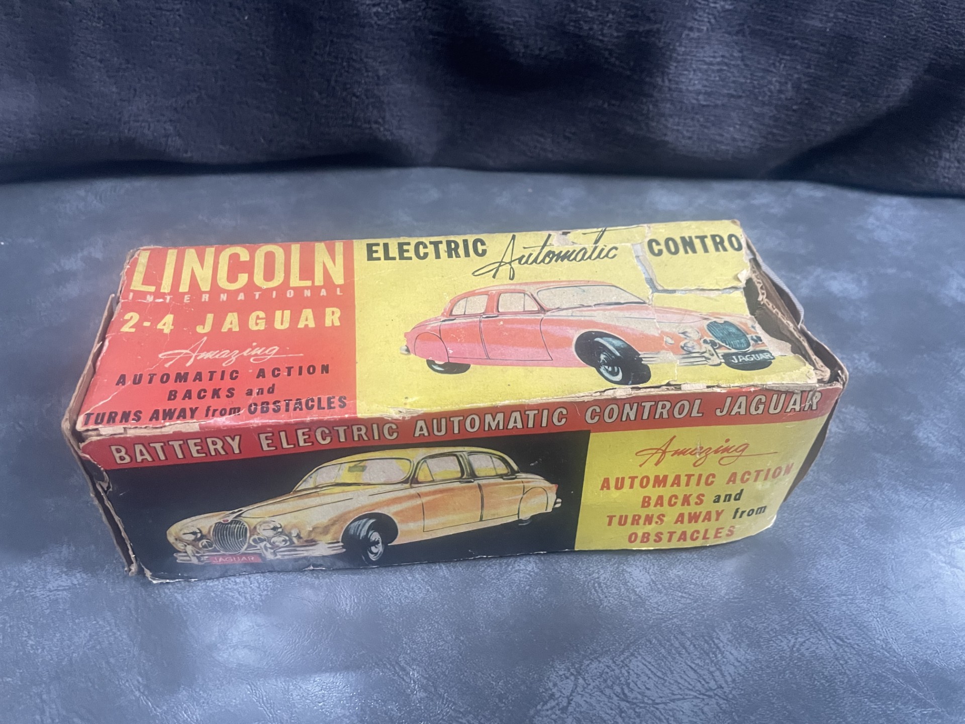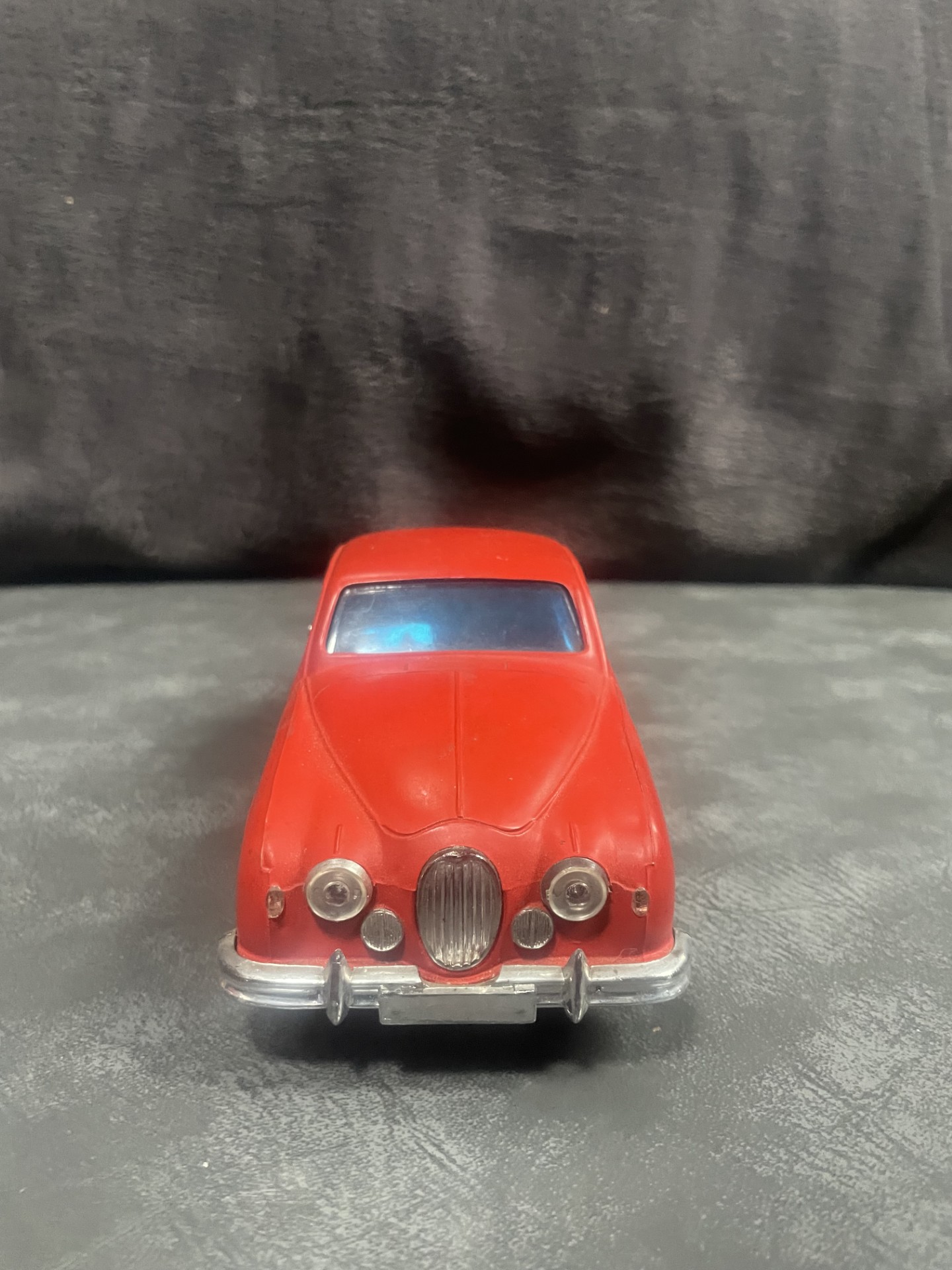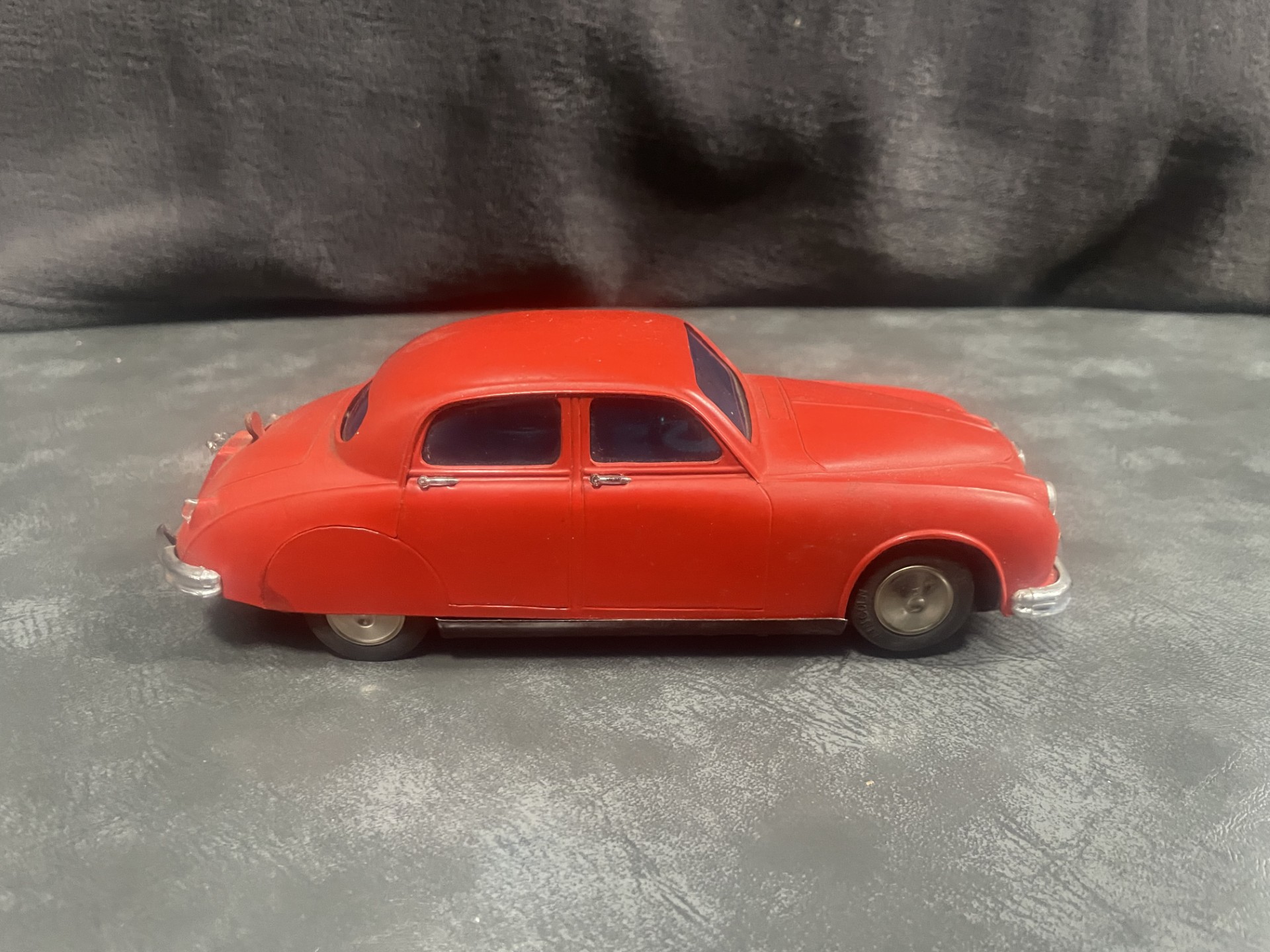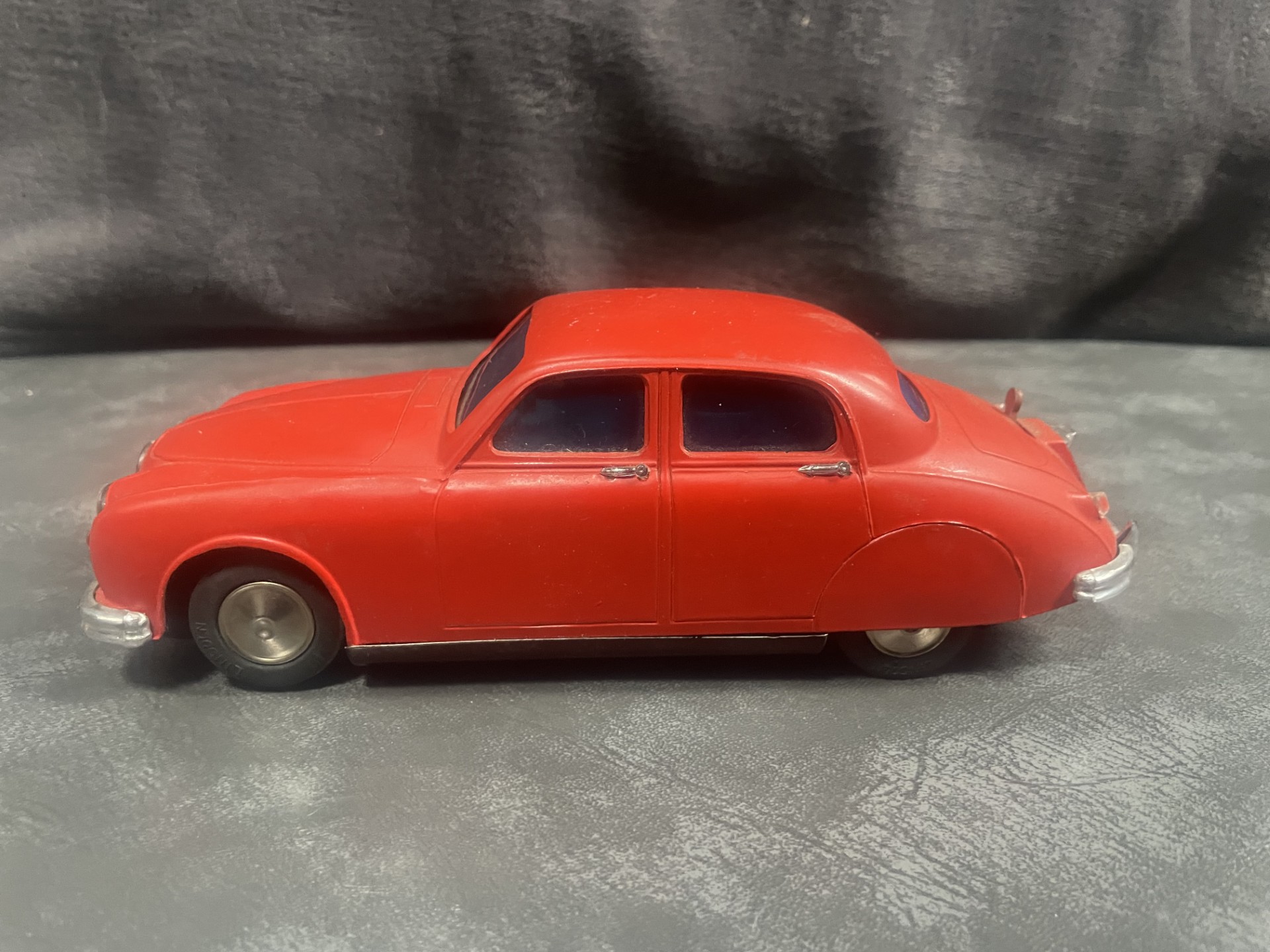 The small battery powered motor was made in Japan. The chassis is tin plate with a composite plastic body, which is in excellent condition for age.